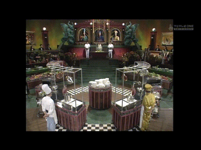 Challenger Indragoli is disbelief. Iron Chef Kenichi pretends he didn’t hear anything. The Chairman is feeding off their fear.