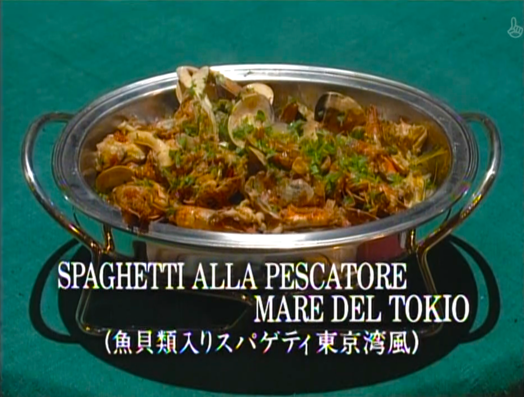 Narita goes with a tried and true Iron Chef tactic; dumping in all of Tokyo Bay onto the theme, in this case spaghetti. Maybe I’m becoming jaded, because they judges are not fooled.